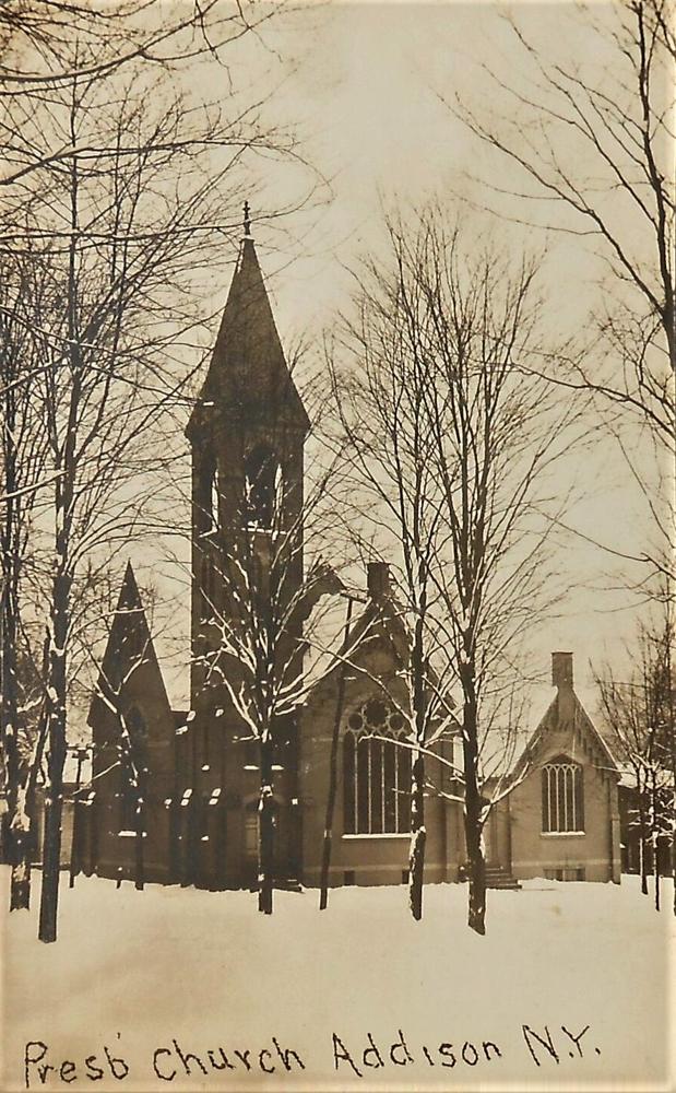 The first building burned on Feb. 7, 1881. The congregation immediately began construction of a new and larger brick church, completed by Jan. 5, 1882. The contract was signed with William King of Elmira for a new organ costing $1,200, built to the "specifications" of L.B. Valk, (church's architect from New York). The organ was tried and approved by Prof. William Stradella, Professor of Music from Hornellsville in early February, and was dedicated in concert on Feb. 17, 1882 by an unidentified organist and two female soloists from Elmira.