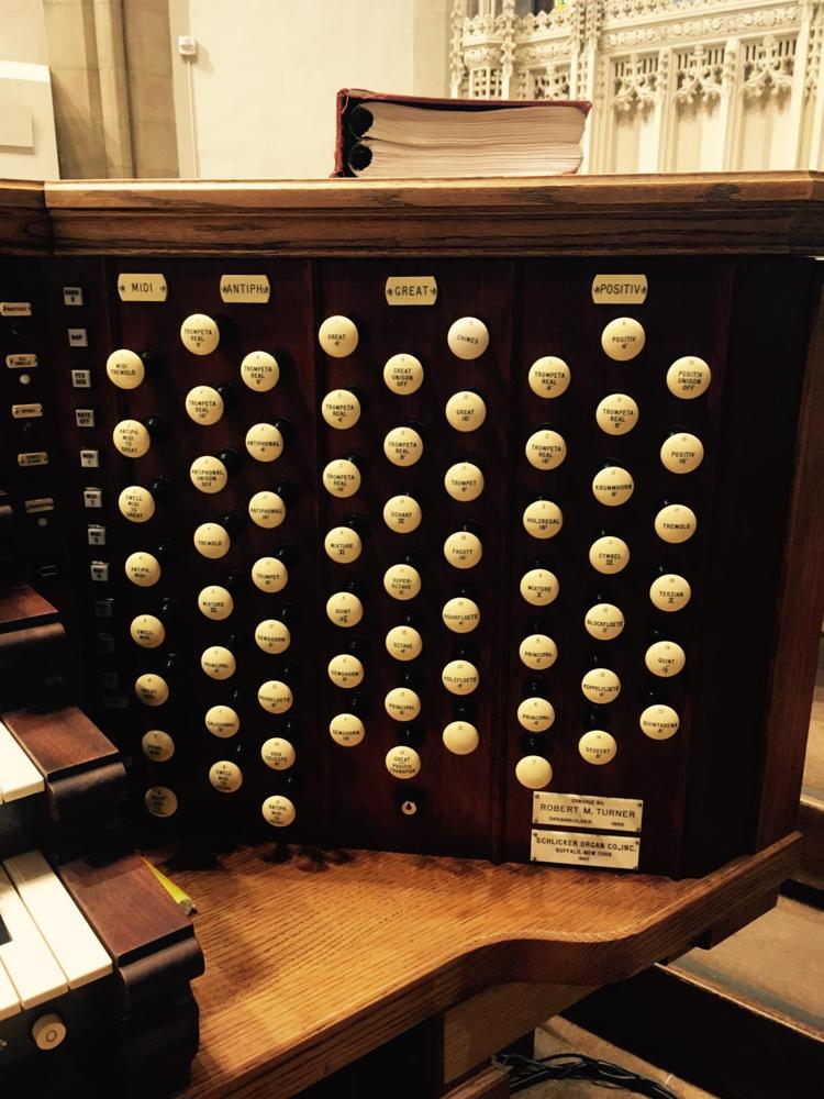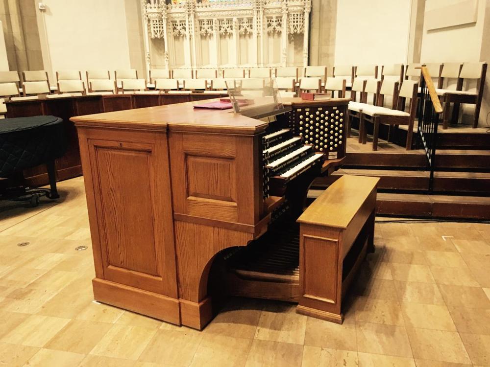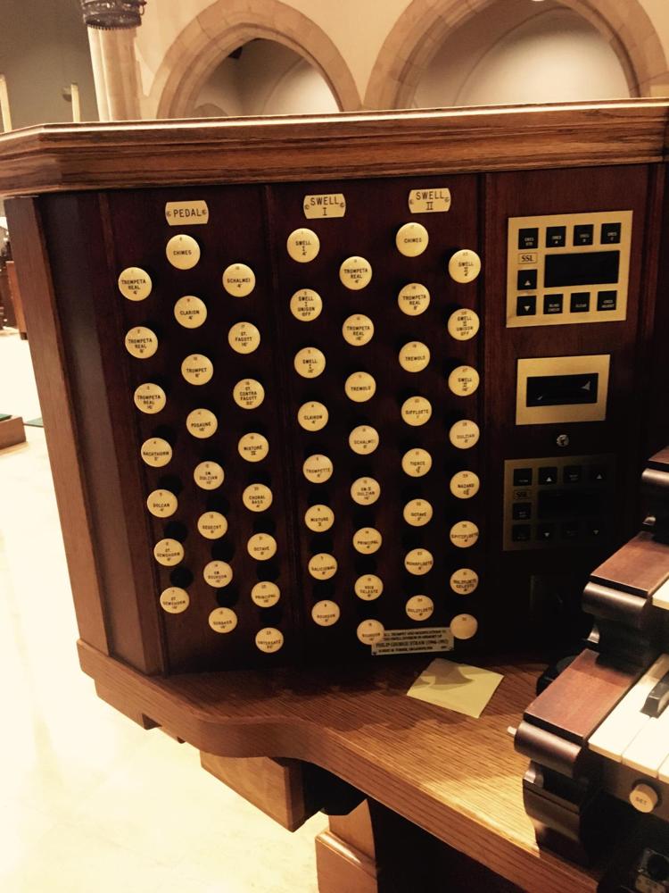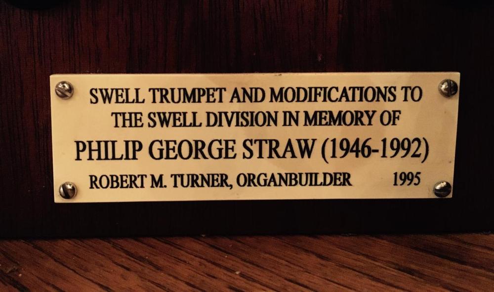 Identified through online information from Jim Lewis. -- New console added in 1992 by Robert M. Turner of Los Angeles. Turner added a Trumpet 8' to Swell I in 1995.