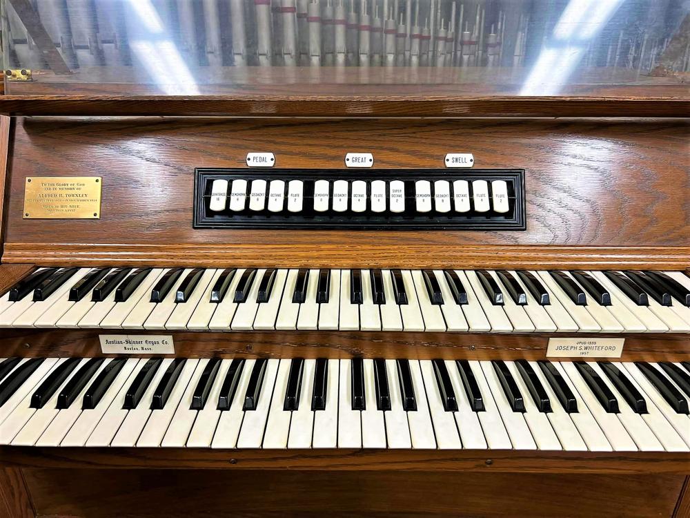 Identified through information adapted from <i>E. M. Skinner/Aeolian-Skinner Opus List</i>, by Sand Lawn and Allen Kinzey (Organ Historical Society, 1997), and included here through the kind permission of Sand Lawn: <br><i> Screen added in 1958, #1335-A; some pipework replaced in 1964 and screen removed; extant; unaltered.</i>