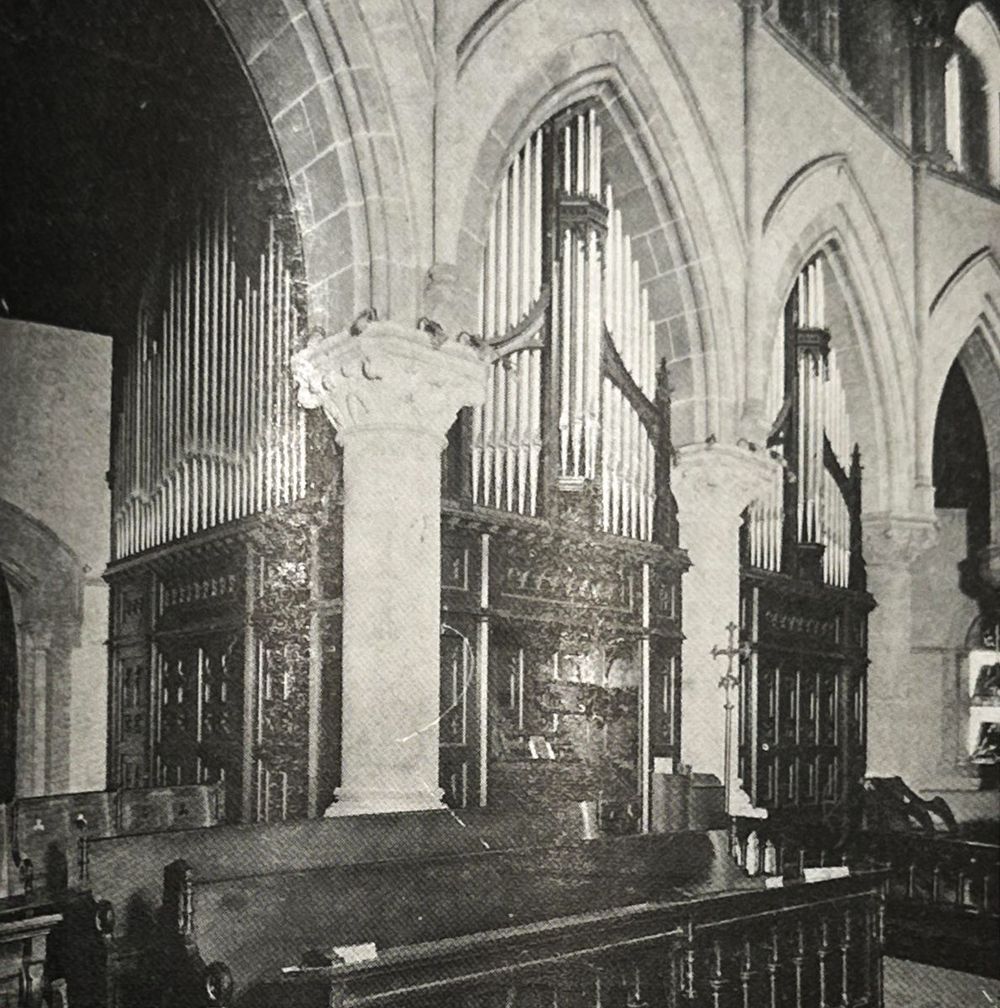 In 1916, casework and decorated pipes were added to the organ chamber openings above the six chancel arches.
