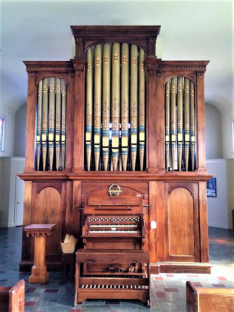 "Immaculate Conception Church closed in 193 7, and the Van Dinter organ was moved to St. Frances of Rome Church by Joseph Ruf and installed in a tower recess. Through the efforts of the Rev. Richard Fowler, the Pastor of the church, the gallery was removed in 1978, and the Miller Pipe Organ Co. reinstalled the organ on the floor at the rear of the church, allowing much better tonal egress than had prevailed." -- *1993 OHS Handbook*