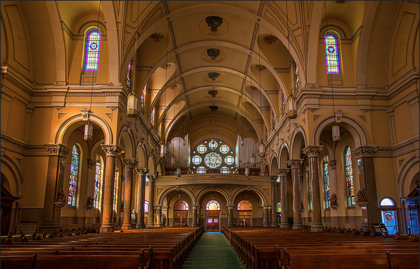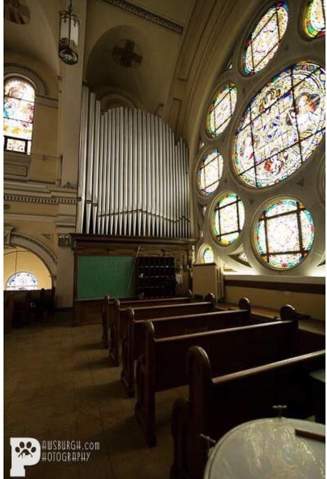 Updated through on-line information from Joseph Tuttle. -- The organ appears to have been transplanted from the previous structure (1889) to the current (1917). It was modified by Organcraft of Pittsburgh in the early to mid 1980s with new console components and a new Great Trumpet among them, and the removal of divisional ventil controls at the console. The instrument sits in twin cases with dummy facades in the rear gallery on either side of the rose window. Currently the organ is in a very poor working condition with barely half of the stops being fully playable. Much of the Swell and the entire Choir division are silent. Most pipes, even those originally scroll tuned, have been inappropriately cone tuned and hence heavily damaged over the years. A comprehensive refurbishment rebuild is needed to return the organ to full service.