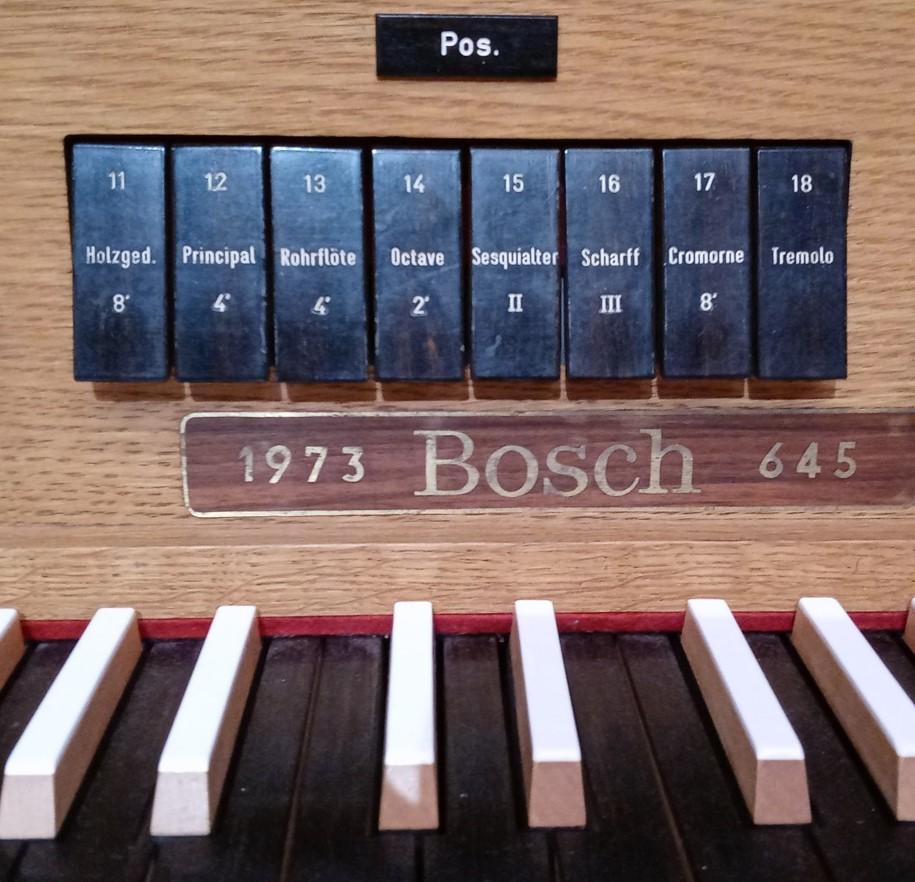 3 Manuals (56 Notes)32 Note Pedal4 Divisions23 Stops23 RegistersMechanical (Unknown) Key ActionElectrical Stop Action✓ Combination Thumb Piston(s)
