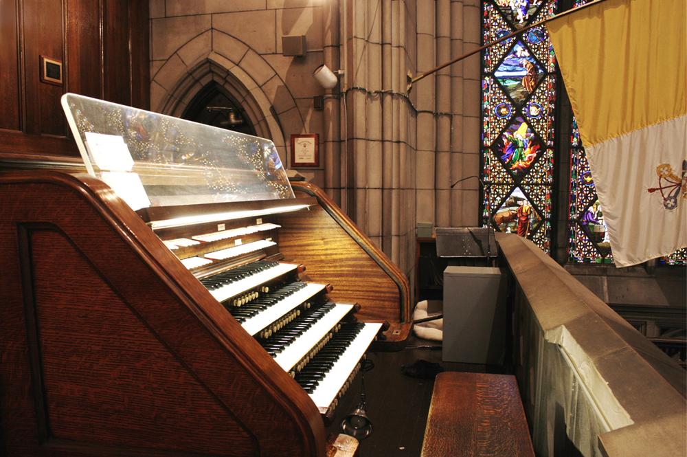 From the NYC AGO NYC Organ Project, Steven E. Lawson: The organ in the chapel was built in 1912 by Philipp Wirsching of Salem, Ohio. As originally installed, the organ had tubular-pneumatic action and a detached and reversed console. In 1925, the organ was electrified by the Wangerin Organ Company of Milwaukee, Wisc., who provided a new console that faces the organ case. At some point, the organ and console were rebuilt by John Klauder of Brooklyn. Klauder also provided new display pipes in the lower center section of the case following the removal of a bas relief of the pope.