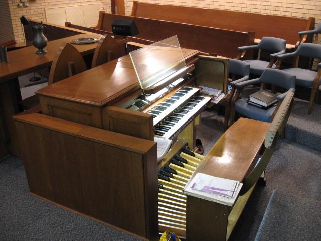 Identified through on-line information from Chad Boorsma. -- The Great division is located in the right chamber, and the Swell is located in the left chamber. This organ replaced a Möller organ that was used in the congregation's previous building. Two digital stops were added ca. 2005 by Donald Haan.