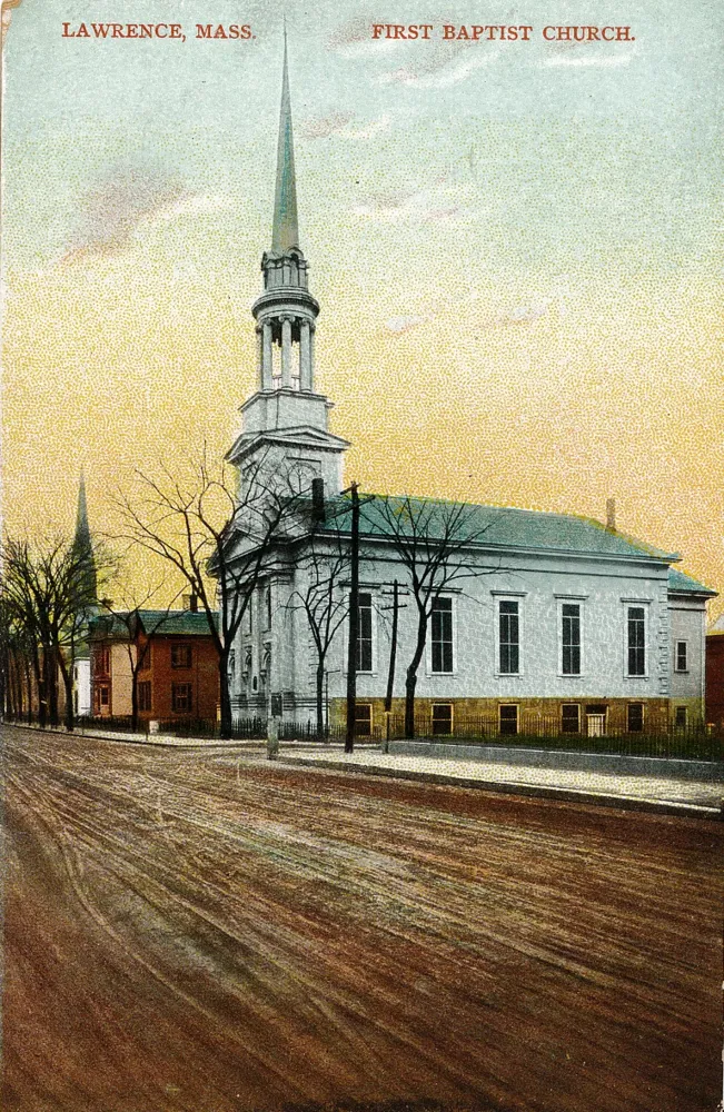 Updated through online information from James R. Stettner. -- The Appleton & Davis was originally installed in the rear gallery of the church. It was reportedly moved to the front in 1890, but an extant photograph from July 31, 1886 when the church ceiling caved-in shows the organ already installed in an alcove in the front by this time. The Appleton & Davis was replaced ca. 1919 by a new Kimball, Smallman & Frazee. It's disposition at that time is unknown. <br>The church was formed in 1847 as Amesbury Street Baptist Church, and the first edifice was built that same year. This second building was built a scant 3 years later in 1850.