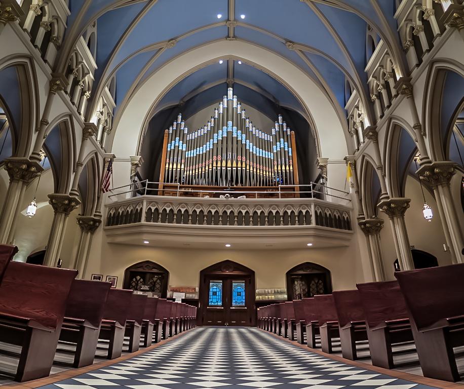 I am the director of music at St. Mary's Church. Parsons Pipe Organ Builders completed a restoration in 2017; the organ is unaltered with the exception of the addition of a full-length pedal 16' Trombone of wood, from a contemporary Hook. The only other change made in the restoration was the recomposition of the Swell Cornet III, at the suggestion of David Fedor. The 5 1/3' rank, which began at mid-C, was removed, and now the composition is simply 12.15.19, resulting in a more versatile and usable chorus.