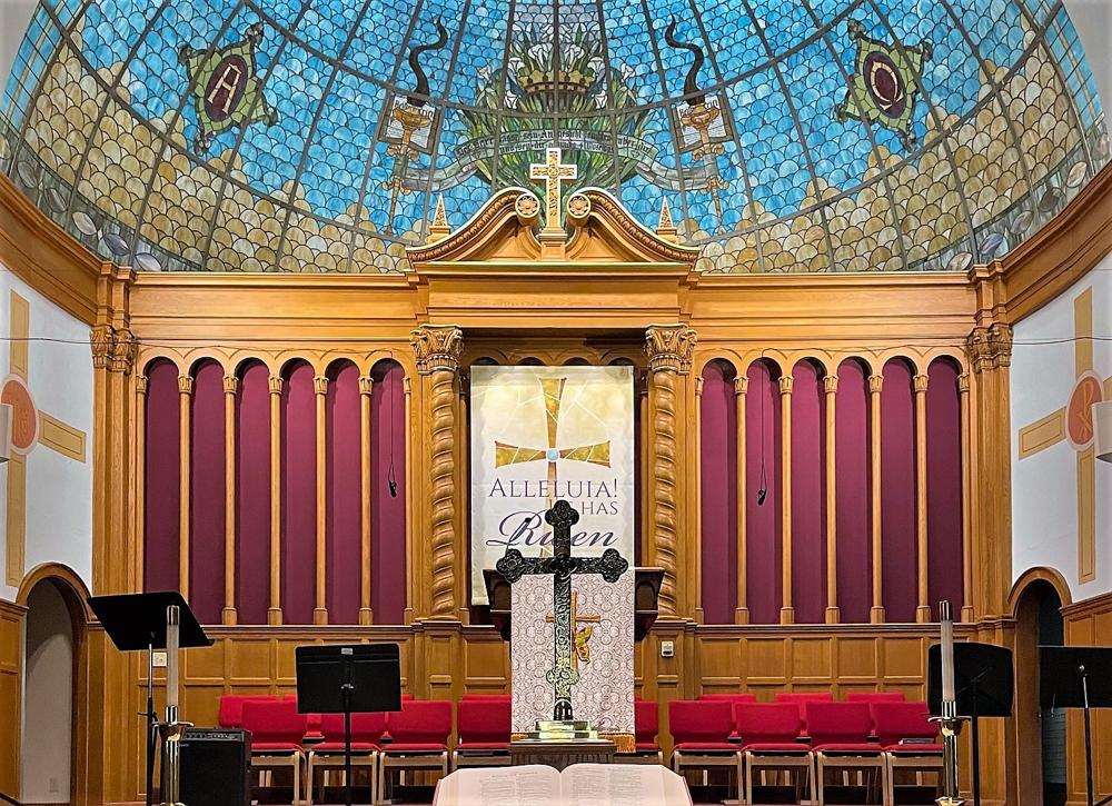Before installation, the console was on display at the library in Orrville, Ohio - home of the Schantz Organ Co.