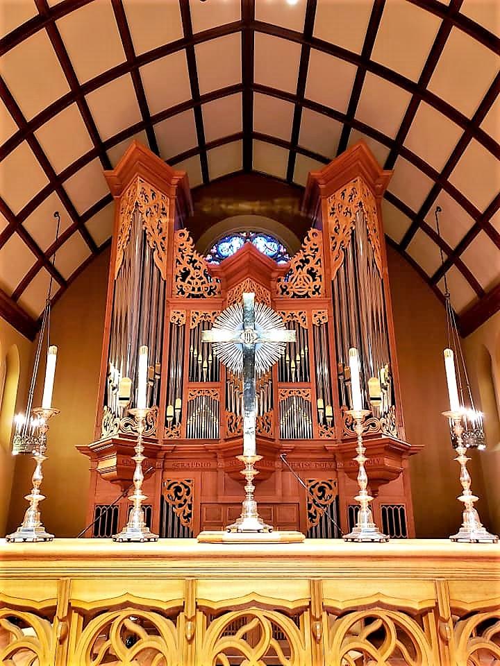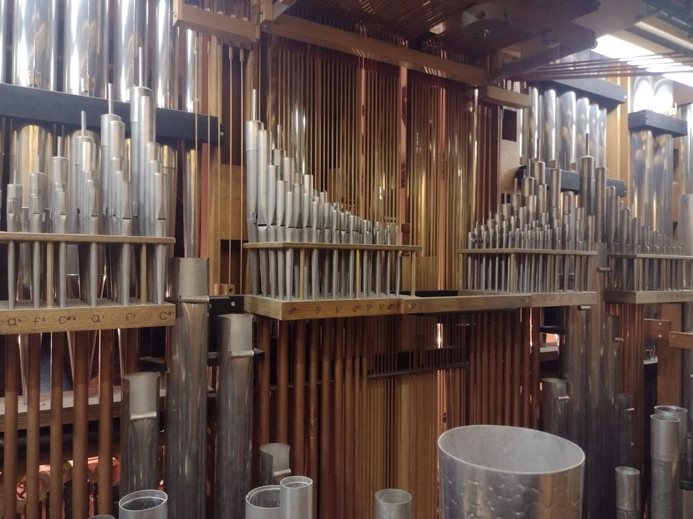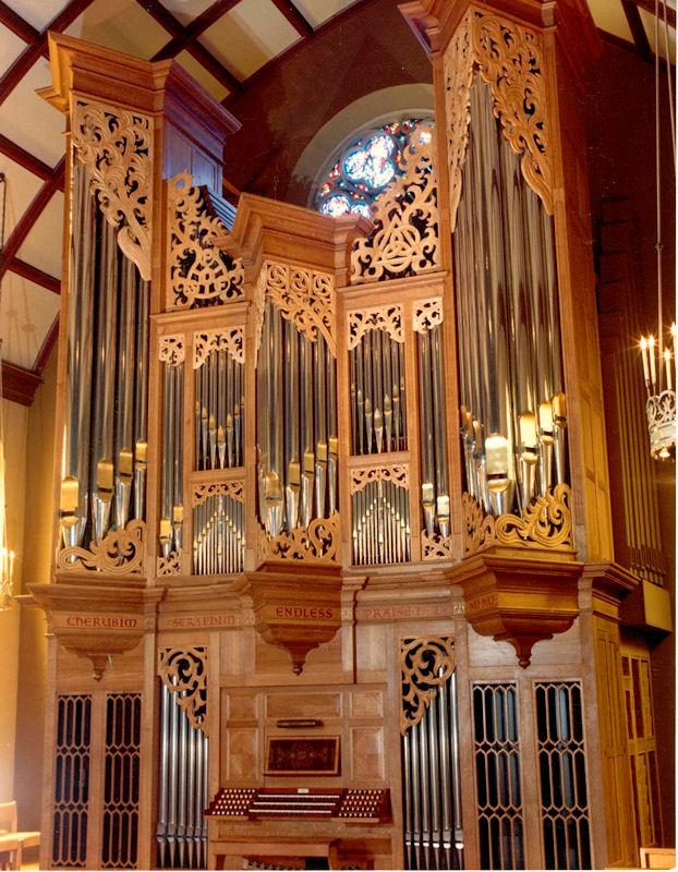 SS Combination, 8 levels of memory. Compass 61/32. Suspended key action. 7 stops from the 1948 Möller were used.