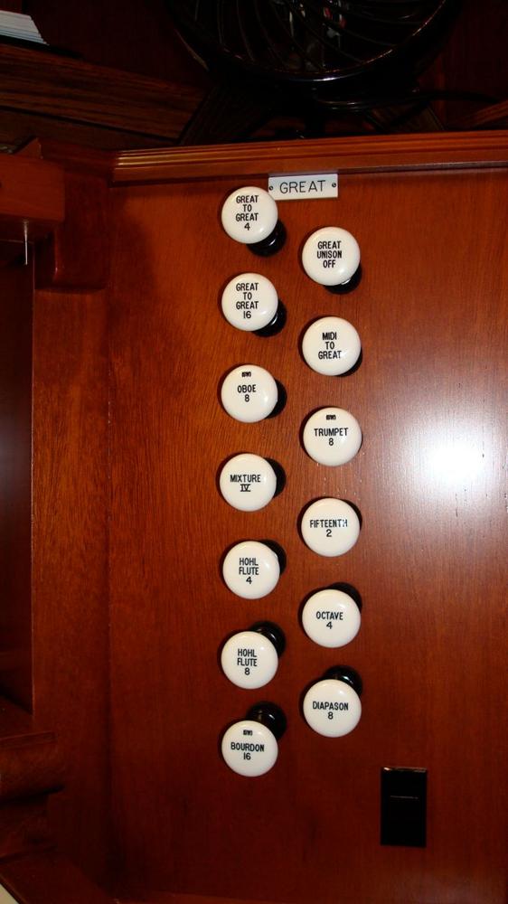 Updated through online information from Rodney J. Weed. -- This rebuild is a vast improvement over the 1928 Wangerin I played here between 1986 & 1993. The organ now uses a lot of duplexing and unification to get the 32 stops out of 19 Ranks of pipes. It puts out a great deal of sound for its size but at 5 inches of wind pressure that is not to surprising.