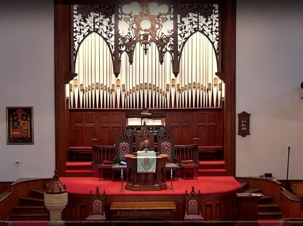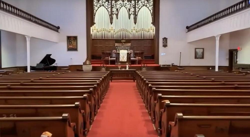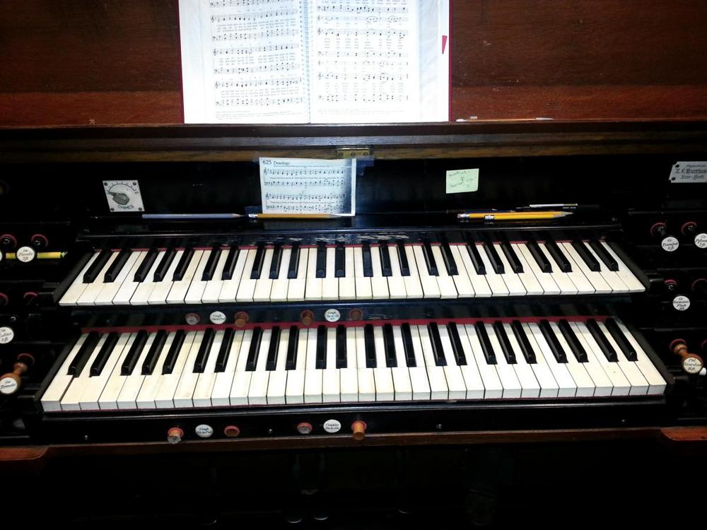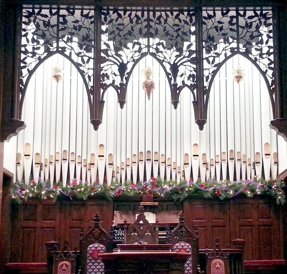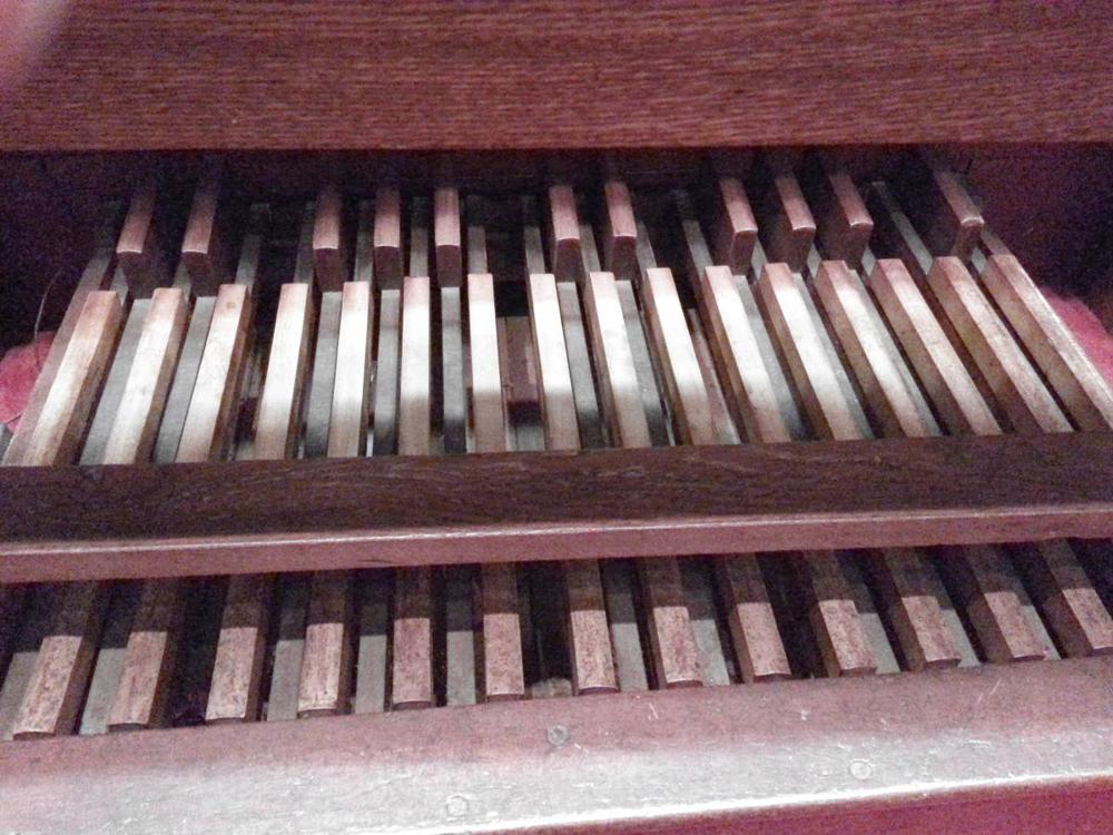 Updated through online information from Davis Folkerts. -- This instrument has accessibility issues making tuning and maintenance difficult. It has noticeably deteriorated in the last decade and is now plagued with dead notes (water damage) and severely out of tune notes. The Trumpet stop is unusable.