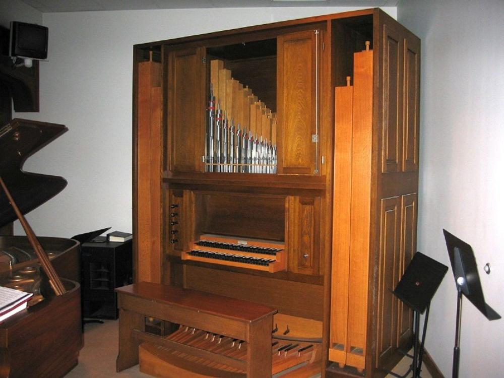 This entry describes an original installation of a new pipe organ. Identified by Jeff Scofield, based on personal knowledge of the organ. -- Organ installed to the right side of the chancel of the Chapel.