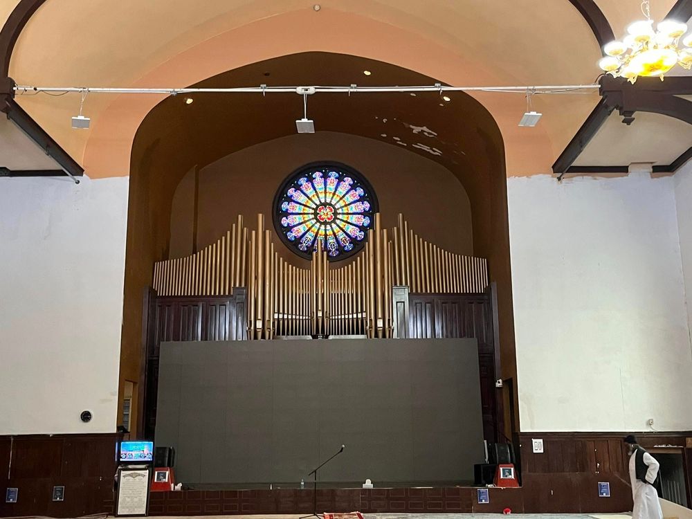 Updated through online information from Julian Girard (March 31, 2025): Facebook post from Heather Bess MacIntosh says, "It is an unfortunate and painful story but what is left of our 1911 Cassavant et Frères 8 rank pipe organ is a pedalboard and pipes. The pedalboard and pipes can be made available to a church or community organization for the cost of removal. Depending on the stop, I can arrange shipping or even bring them myself. This was a very beloved instrument that has become an organ donor, pun intended, when the console was removed with a reciprocating saw."