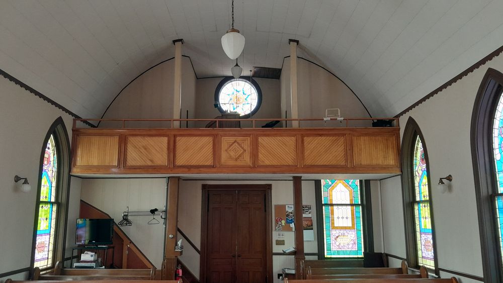 Updated through online information from Shawn P. Keith. -- The pipes are in a chamber built for the organ on the right side of the chancel. The console is in the rear gallery.