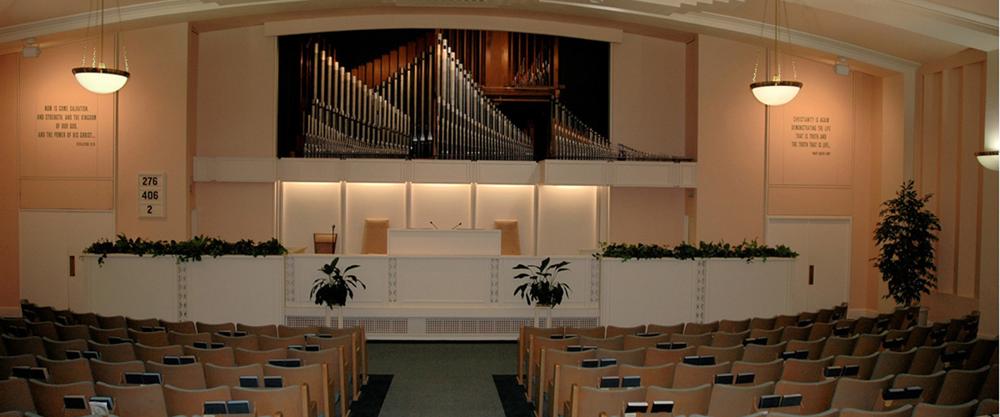 Updated through online information from G. Mark Caldwell. <br>The Positiv division was placed in a room on the far left side of the sanctuary in the 1960s. In c. 1995, the sanctuary was renovated, and its curator was asked to return the Positiv to its original cantilevered position in front of the organ gallery in the front of the room.
