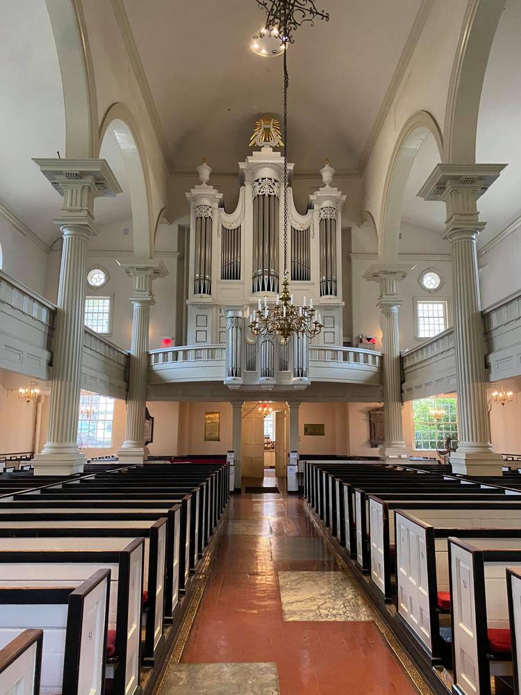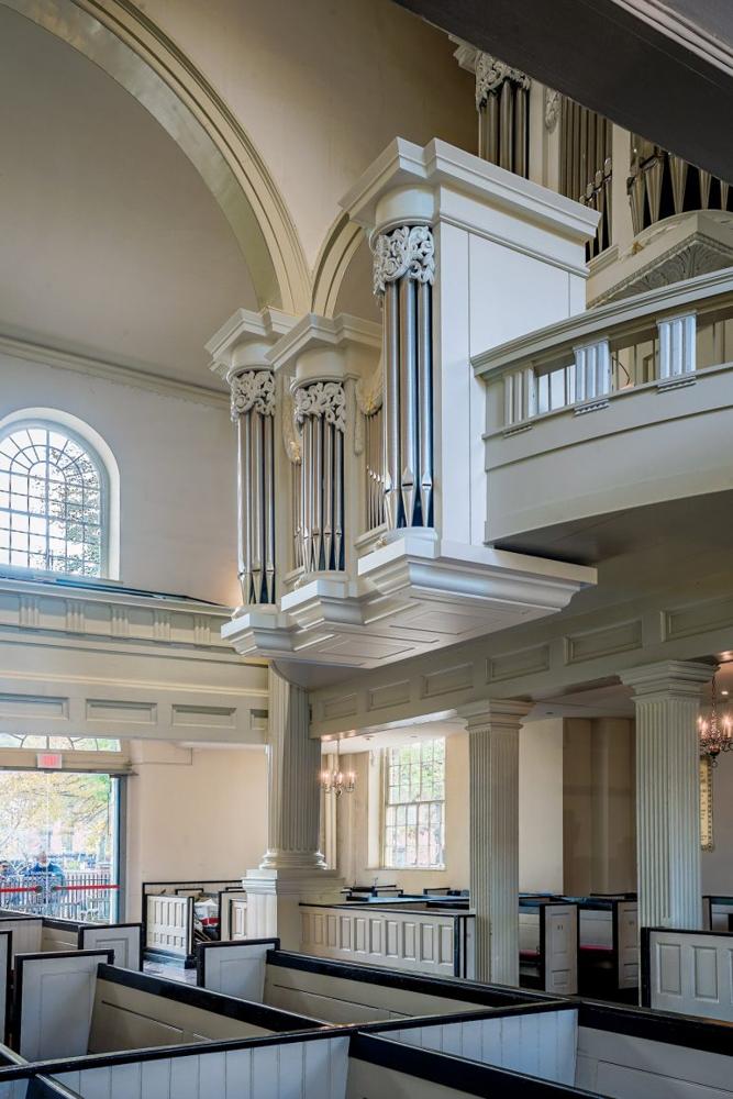Reuses existing historic case, and a new Chaire case on the gallery rail.