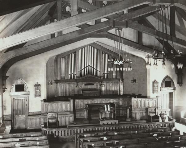 <br>High Str. previously used a reed organ. The new Felgemaker pipe organ was installed in 1881 (cost $1950); the church was electrified ca. late 1890s but the organ may not have been. <br>It was reinstalled in 1904 when the church was rebuilt, and it was officially in disrepair by 1936 church report. By summer 1941, the organ often didn't work at all, leading to discussion about replacing it with an "electric" [electro-pneumatic] one, along with chancel renovation (enter Schantz). <br>The Felgemaker was removed in 1941, though "a few pipes" were reused in the 1942 Schantz organ, but the grand majority of the new organ was Schantz-built.