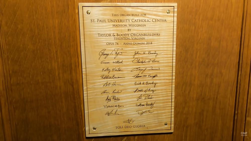 Updated by Andrew Schaeffer, who has heard or played the organ. The organ was finished in late 2018. University of Wisconsin organ professor, Dr. John Chappell Stowe, served as the consultant and also played the dedication recital on Sunday, May 19, 2019.