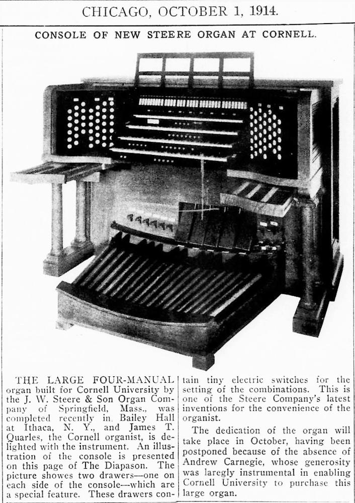 The instrument was scrapped in 1961. I have a few ranks from the Echo and the Swell. Larry Kerecman also had ranks from the Choir.