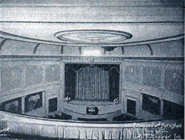 The free-standing swell boxes were installed in their own chambers at house-left and house-right at the front of the auditorium. The organ was a "stock" Style F.