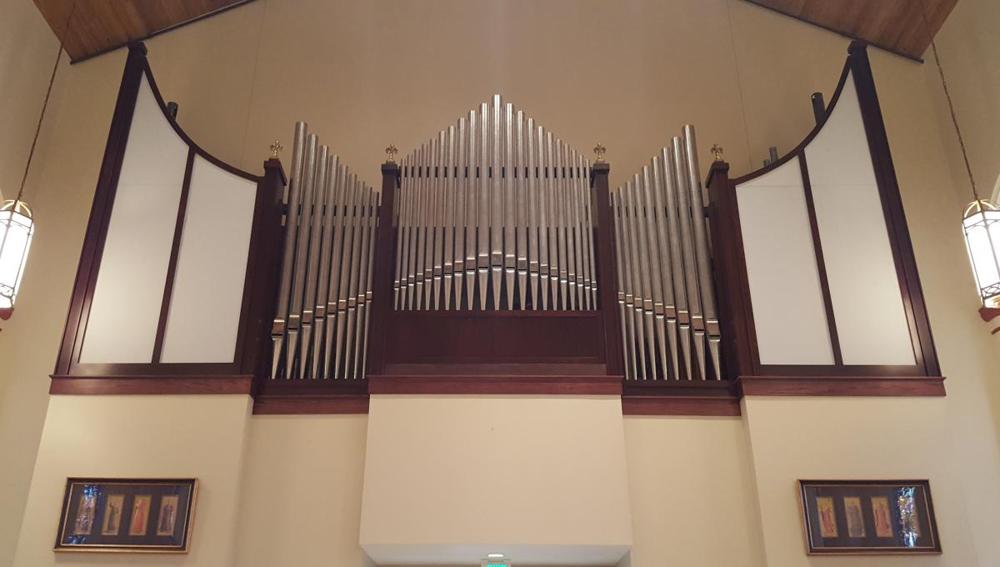 The organ has at its core the Principal chorus from the Hofmann recital hall organ at the University of North Texas. This is placed on a new chest. The remainder of the Great organ is the 1950 Great division of the First Church of Christ Scientist in Austin, Texas. The Swell division is from the same organ with the addition of Austin and Kilgen pipework. The chests for the choir and positive divisions are from St. Paul Lutheran in Bay City, Texas. The pipework is from Skinner, Wicks, Hilgreen Lane and Stinkens. The console is from St. Paul Lutheran Church in Austin and was modified for this installation with new components and keys.