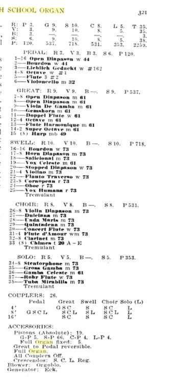 Saw that the incorrect year was listed. (The organ was contracted & installed in 1920, not 1919 when Lincoln High School opened.) Also add ranks/pipes