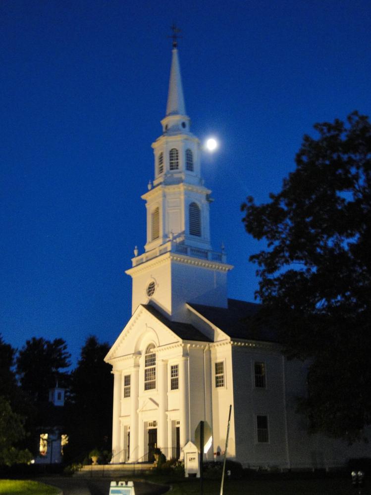 The Berkshire replaced a unit Frazee, new to the building ca. 1927-28. The previous building and its Hutchings organ were destroyed by fire in 1926. The choir gallery is above and behind the pulpit, the Frazee was in a chamber on the left speaking into the choir through a grill. The architect designed a sham organ case installed front and center against what was then an outside wall, rather well designed in a way, reminiscent of English and American organs of the late 18th and early 19th centuries. It was flawed with too many facade pipes of narrow string scale and greatly forced length. In 1956 a Sunday School wing was added behind the chancel wall. For the installation of the 1984 Berkshire, a new plaster and lathe chamber was built behind the 1927 facade encroaching into the conference room behind it. A hole was punched through the original outside wall behind the facade for sound egress, and new speaking facade pipes (with too-long pipe feet) were installed in the 1927 casework.