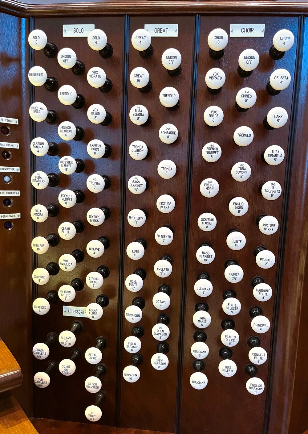 | 8' | Trumpets III | SW ConPos, Trmpt, Clarion |