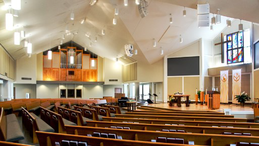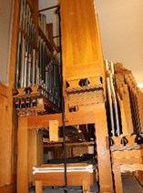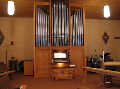 From a church history summary: 1989..."In late summer, a customized tracker-action, oak and black walnut organ was installed, which should last 300 to 400 years. There were 732 pipes; 21 were visible. It was built by J.C. Taylor & Co." In 2012 after completion of enlargement/new sanctuary project Classic Church Organs (Rodgers Organ dealer in Wisconsin) incorporated the original J.C. Taylor organ pipework into a new, 3-manual extensively digital organ, adding "almost 300 digital pipe ranks that speak through 16 speakers powered at 1,600 watts of power! The 14-rank pipe configuration and all 16 speakers that constitute the “main organ” are located in the mezzanine balcony at the south end of the Ascension worship space." -- information from from a brochure produced by Classic Church Organs