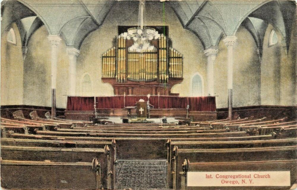 This organ is known from the William King work list compiled by King researcher Dr. Donald R.M. Patterson, and published in The Tracker XVI:4:1972. The organ was rebuilt by Thomas Knollin of Syracuse in 1900. The building became a social center after the merger of the Presbyterian and Congregational churches in 1912, and was torn down ca. 1928-29. The ultimate fate of the King-Knollin organ is unknown.