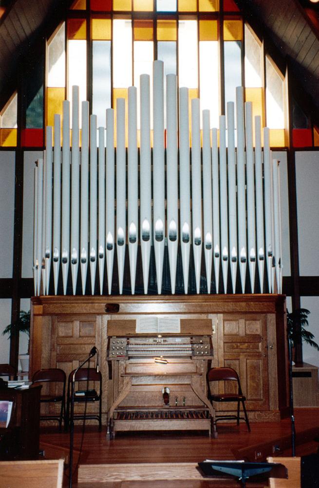 Updated through online information from James R. Stettner. -- The couplers are actuated by mechanical rocker tablets over the Swell keys. The Great 8' Open Diapason has its first 17 pipes in the façade, and the Great 8' Dulciana has its first 12 pipes also in the façade.