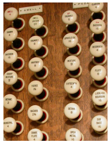 Today the organ is much larger, having grown to 51 stops. The work was started in the early 1970’s by David Legge and Willan’s successor Giles Bryant. Additional work was carried out by Alan T. Jackson and company, the local Casavant representatives, and in 1980 the organ was rededicated as the Healey Willan memorial organ. Casavant windchests were provided throughout the instrument, except for the separate pedal Subbass and Open Wood chests, which remain original. New pipes (marked with an asterisk in the specification below) were provided by the Casavant factory in St. Hyacinth Quebec, and some second-hand material was used to form other new stops from the Warren organ dismantled at St. Andrew’s Presbyterian Church on King Street. Some of the original pipework was revoiced, but much of it still speaks with its original and very British sounding character.