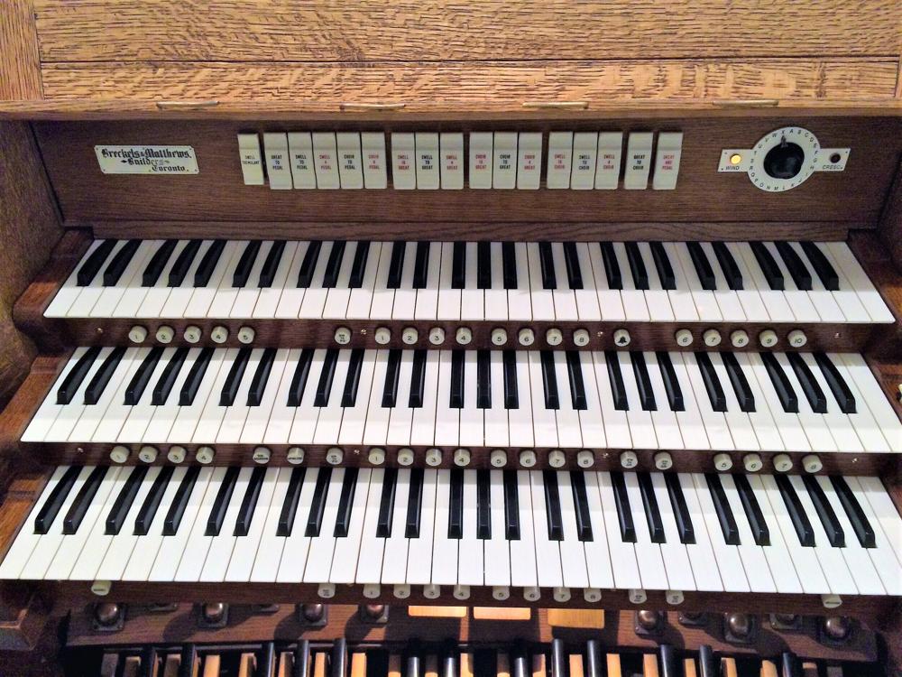 Healey Willan, who is revered by this church to this day, expressly wanted no changes made to his organ at the time of his death, and was very upset at the neo-classicization of his old instrument at St. Paul's, Bloor Street in 1956. Far from being a "British" instrument, it was simply of a very standard and conservative Canadian style at the time, only a bit more adventurous than Charles Sumner Warren's instruments of a few years prior and not nearly as progressive and British as Casavant would become in the next decade. Nonetheless, the instrument was heavily modified following his death and re-dedicated as his organ despite the fact he would not have approved of any of the work. Most of the principal chorus was re-scaled and de-nicked quasi-automatically (as was done at St. James by the same people only a few years prior), the original reeds were re-voiced and new ones added not in the character of the original (the Warren 16' reed from St. Andrew's was altered to such an extent that it no longer sounds like one of that era, let alone from that builder), characteristic Romantic stops were replaced with unblending mixtures and mutations that do not make sense in context, and the expressive wind system of the original was swapped for completely solid Schwimmer wind. The level of intervention has been hidden from the public and is partially veiled by the very generous acoustic and placement of the organ. Nonetheless, one can detect the vestiges of an instrument originally of great Romantic beauty. Despite being the only instrument in Toronto with a preponderance of Breckels & Matthews pipework, and much of it being fairly easy to return to its original state, the church is not financially healthy and there is no money for the restoration which the organ deserves.