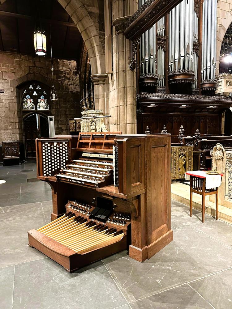 Emery Brothers of Allentown, Pennsylvania, took on the restoration of the chancel organ. The process of reinstallation was managed by long-time curator Steve Emery. Repairs and revisions of the Antiphonal organ were carried out by Foley-Baker Inc., of Tolland, Connecticut. The resulting instrument comprises 114 ranks of pipes.