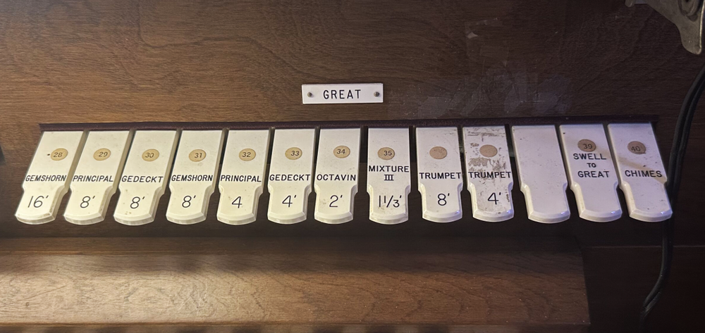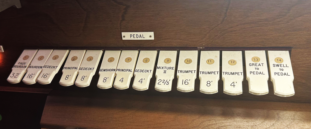 | 16' | Gemshorn | Pedal 16' Gedeckt |