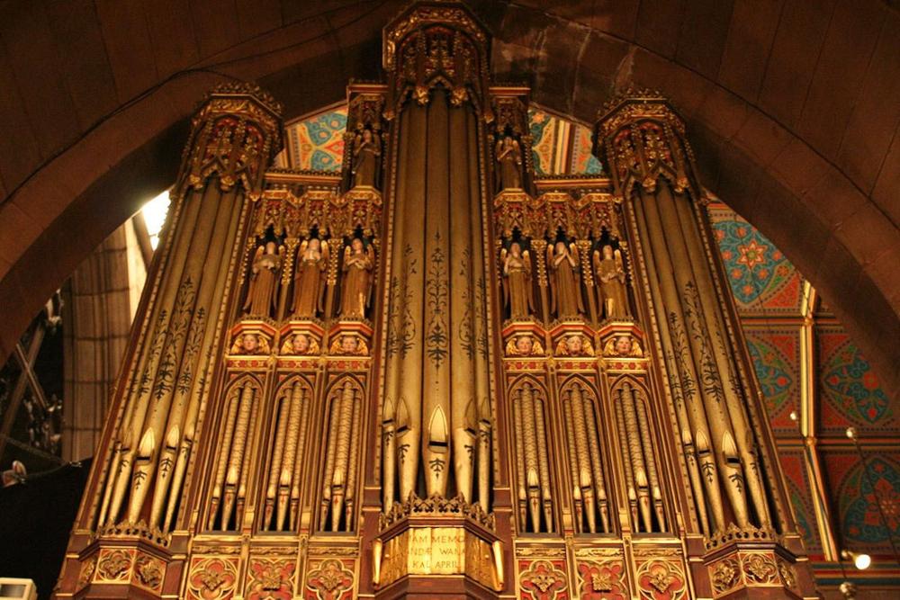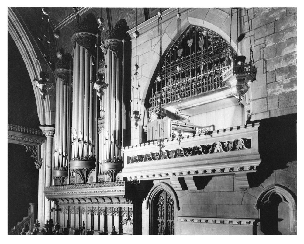 Updated by Ray Biswanger, who has heard or played the organ. The console is in a loft below the main instrument. The String Organ chest is of the Fleming design, built by the Wanamaker Organ Shop, with Kimball pipework. The Screen Organ is by Austin (Carlton Michell (1902) and the contract stated it was to be \"a replica of the famous 16th-century work in England.\" Its backward-looking design preceded the Organ Reform movement by several decades. The predecessor Austin is covered in Orpha Ochse\'s Austin book. The Wanamaker Shop had a Welte chest built for this pipework, replacing the original Austin Chest. G. Donald Harrison remade the 4\' Lieblich Flote into a Nazard. The pipework of the Screen Organ, however, remains Austin. [This was covered in detail in my own book, \"Music in the Marketplace.\"] I took lessons on this organ and was a parishioner there for almost 30 years. During Wesley A. Day\'s tenure as parish organist, in the late \'50s or early \'60s, the central tower was removed and carved panels were produced at some expense to open the main case and let the tone out. This tower (pieces from which were kept in the undercroft) was subsequently returned during the Zimmer enlargement. Some of the Richards/Midmer-Losh West End organ went to First Baptist Church, 1373 Grant Street, Denver, Colorado, as another Database entry duly notes.