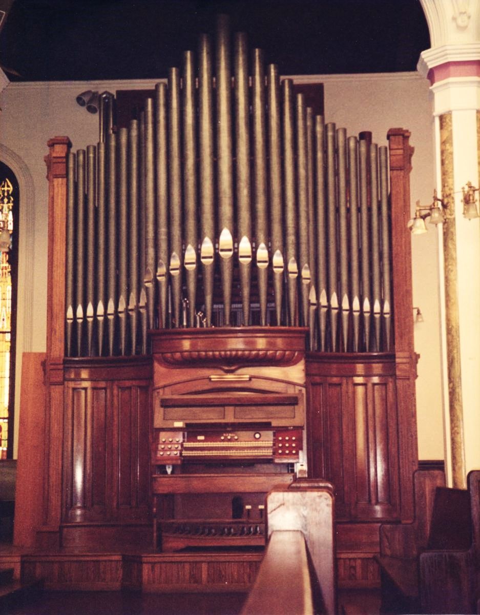 Rebuild of 1901 Möller Op. 388 (2-13rk), built for St. Paul's Lutheran, Davenport, IA. Moved here and Installed here 1980, rebuilt by John DeCamp 1984, 2-24rk, 21st. PSS old & new stop lists. Includes Open Diapason from 1882 Steere & Turner, Gt. Trumpet from 1895 Farrand & Votey.