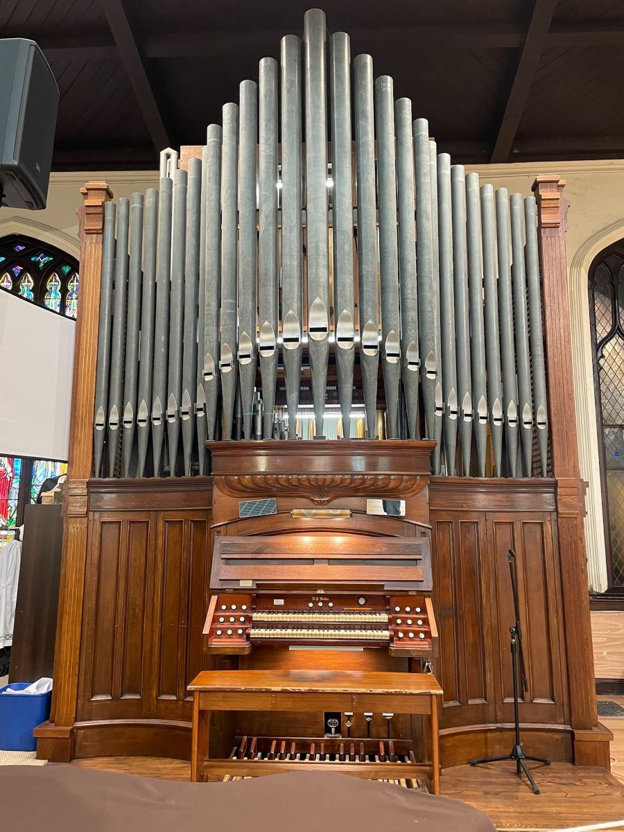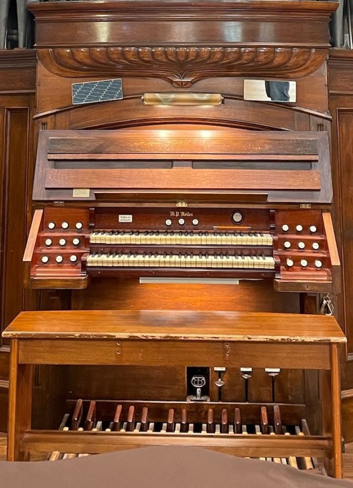 The story of St. John’s “new” organ begins in January 1902, when St. Paul’s English Evangelical Lutheran Church in Davenport, Iowa, contracted with M.P. Möller, of Hagerstown, Maryland. The firm agreed to build its Op. 388, a two-manual-and-pedal instrument with tracker (mechanical) action and thirteen ranks of pipes, for $1,500 and to install it that same year. By 1980 the building housed a different congregation and the organ was no longer in use, having suffered water damage from a leak in the roof. After information furnished by the Organ Clearing House on this and other available organs had been considered, St. John’s organist Nathan Privett and organ technician John DeCamp inspected the Davenport instrument and recommended its purchase.