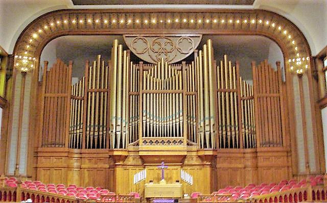 Updated through online information from Bryan Dunnewald. -- Going to get its fifth console. Being rebuilt and enlarged by Rick Morell and Associates. Sweet Sound, not many strings. Getting a festival trumpet and other pipes, and possibly 32' bombard.