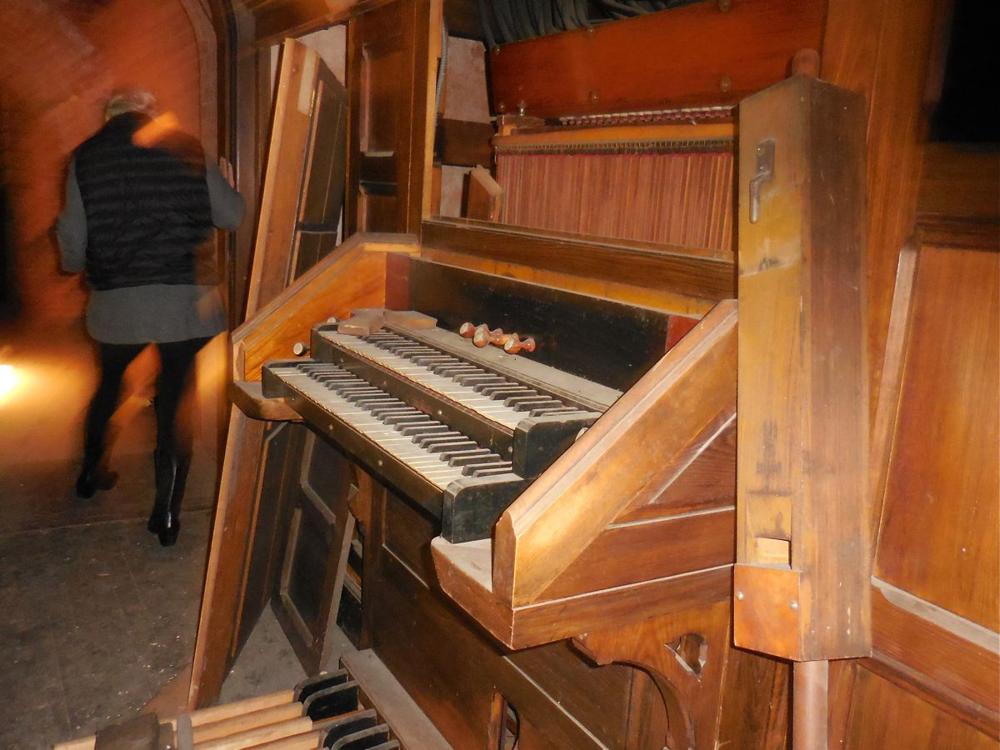 Updated through online information from Eleanor A. Congdon. <br>Organ had facade dismanteled as described, but rest (keyboard, pipes, inner workings) have sat. In 2003, according to nuns, the leather parts had dried to the point of needing replacement. Whether it can be restored needs to be assessed by a skilled organ-builder; the decision whether to junk it or try to save it depends on the property owner getting accurate information and/or expressions of interest. (Last part is from personal communication with development officer.)