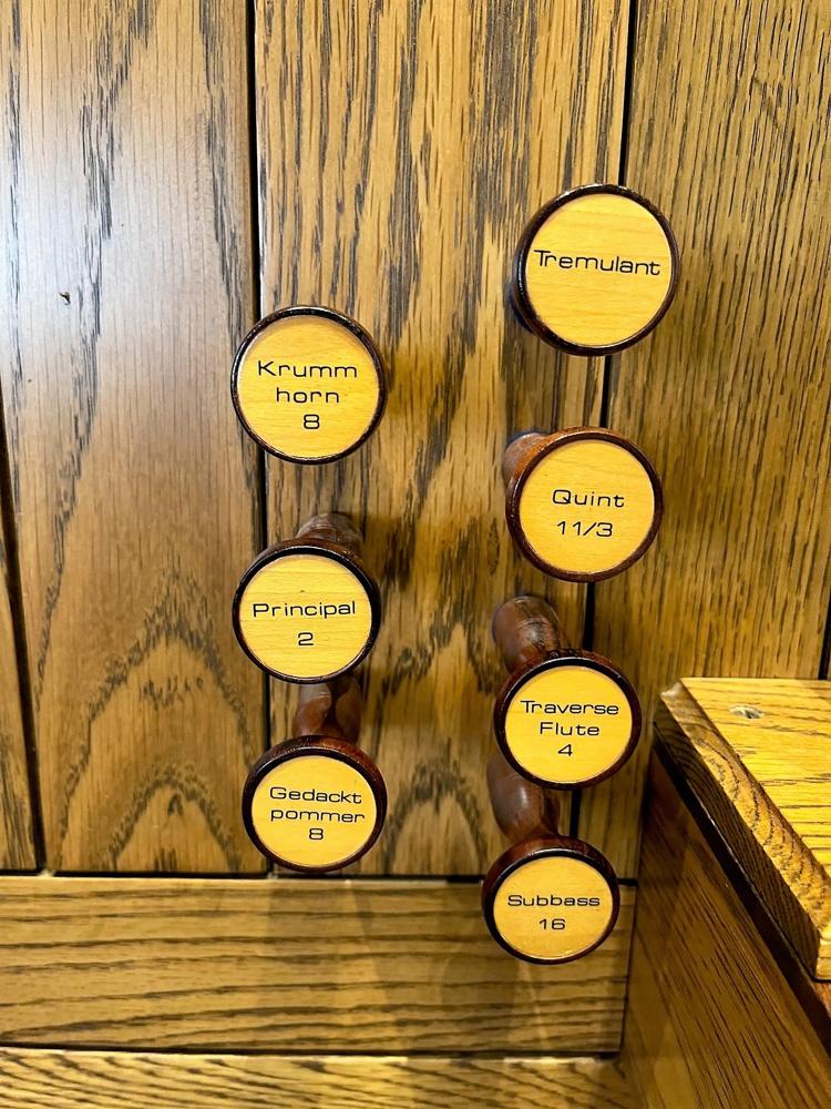 2 Manuals (56 Notes)32 Note Pedal3 Divisions11 Stops12 RegistersMechanical (Unknown) Key ActionMechanical Stop Action✓ Hitchdown Coupler(s)