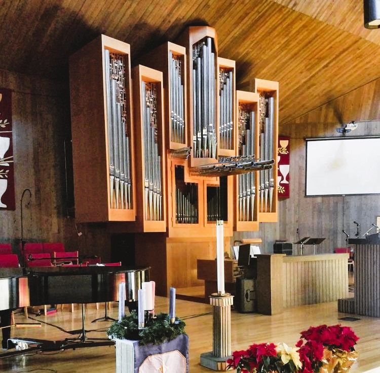 Updated through online information from James R. Stettner. -- Info from the builder's website and the church website. Manual I is a coupling manual. The organ is free-standing and encased with e 7-sectional facade. The Swell is beneath the Great in Brustwerk position. The Great 8' Trompete is en chamade.