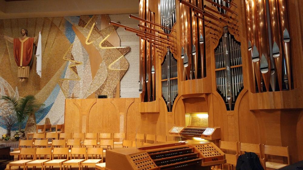 Virtuoso switching and combination action system from Integrated Organ Techologies, Inc. installed in 2024 by Sean O'Donnell. Included in the new system are fiber optic connections between the consoles and chamber, virtually unlimited user folders and memory levels, and a piston sequencer system with back and next thumb pistons and toe studs.