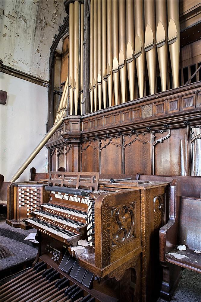 Updated through online information from Trevor Paraiso. -- Building has been abandoned since 2005. Console still intact. All pipes have been scrapped and remaining swell box/case frame is severely damaged. Remnants of organ are in danger of being destroyed entirely.