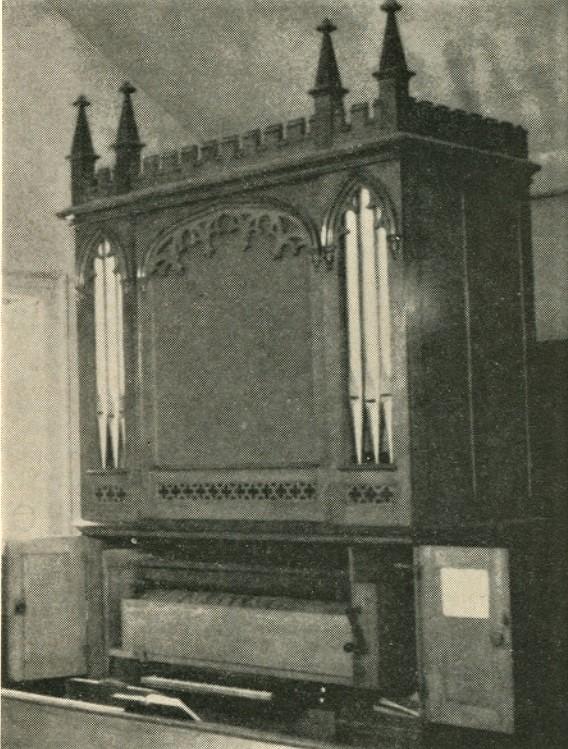 Finger and barrel organ. No pedals. Drawer-style keyboard. Compass 53.