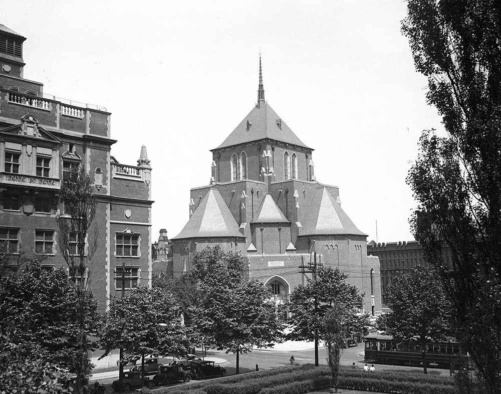 Organ relocated from Sesquicentennial Exposition and reinstalled in Irvine Auditorium by Austin Organs representative Herbert Brown, paid directly by Cyrus H. K. Curtis. Installation took place 1928-1929.