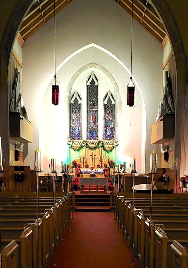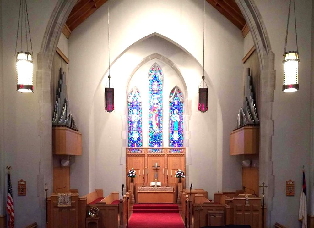 Updated through online information from Jeff Scofield. -- Swell and Choir in side chambers opening into the divided chancel, with Great and Pedal functionally exposed in front of the two chambers.