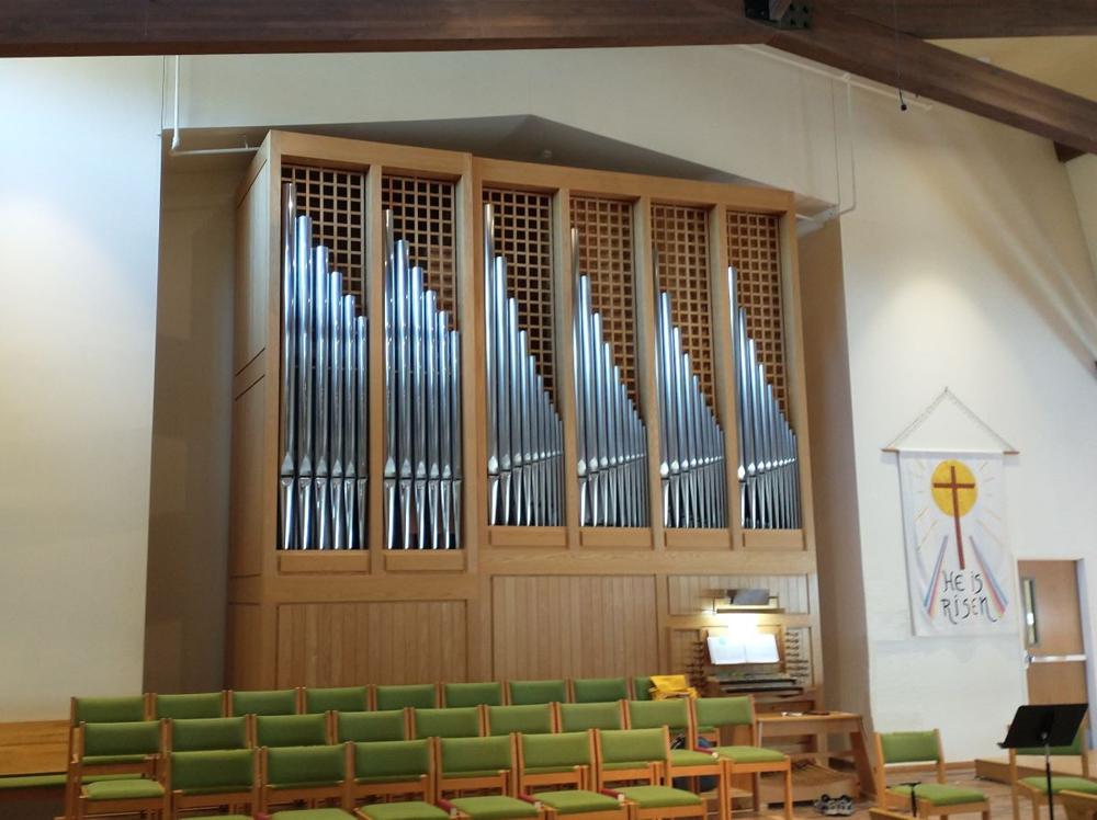 Updated through online information from Stuart Boehr. -- In 2011, twelve of the lowest facade principal pipes were replaced due to bowing and crinkling of the original pipe (the other 40 yet to be replaced!) The new pipes were made by Organ Supply Industries and installed by Mike Johnson, Fargo, N.D.