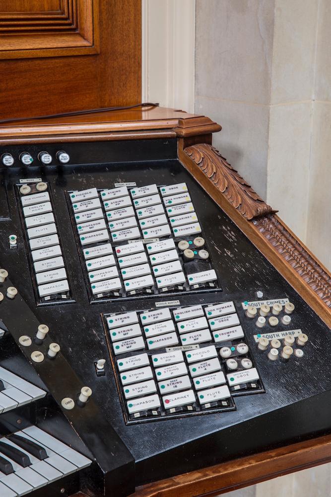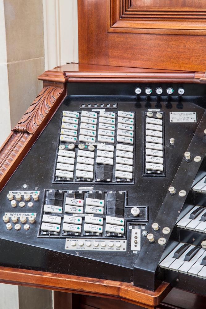 -- George Eastman's original organ was Opus 947 a 3/66 and player installed in 1905. In 1917 Eastman added 66 more ranks, an enlarged 4 manual console, and renumbered the whole instrument Opus 1416. That second half of the instrument was damaged by fire and in the 1970's it was removed.<br>Aeolian Opus 1345 has now been successfully paired with Aeolian Opus 947 as was first done by George Eastman in 1917 when he doubled the size of his Aeolian pipe organ and it became Opus 1416. Opus 947 is still referred to as the South Organ, and 1345/1416 is/was referred to as the North Organ. The two instruments have complimentary sounds and the effect when all played together is the sound that a conductor would hear while standing on the podium. It is in a modern term, Surround Sound. <br>Opus 1345 arrived in Rochester with a fully functioning and restored, by Dr. Richard Zipf of Sacramento California, console and player and they are still fully functional. The wiring between 1416 and 1345 was restored so that now both instruments can be played and controlled from the console of 1416 as well as by the Aeolian Duo Art roll player of Opus 1416. It is also possible to play two console organ duets.<br>When the original Opus 1416 was complete it contained 132 ranks. When the original North Organ was damaged and the pipes were removed the instrument was down to the original 66 ranks of pipes of Opus 947. With Opus 1345 taking the place of the Original North Organ it brings our current rank count to 106. To complete the tonal design as George Eastman wanted it to be, we need to add the other 26 ranks and most of them need to be Aeolian String Ranks. Yes, the original tonal design of the instrument included 49 ranks of strings. He wanted the instrument to sound like an orchestra and so half of those string ranks were celestes creating an automatic shimmering string sound without using Tremolos.